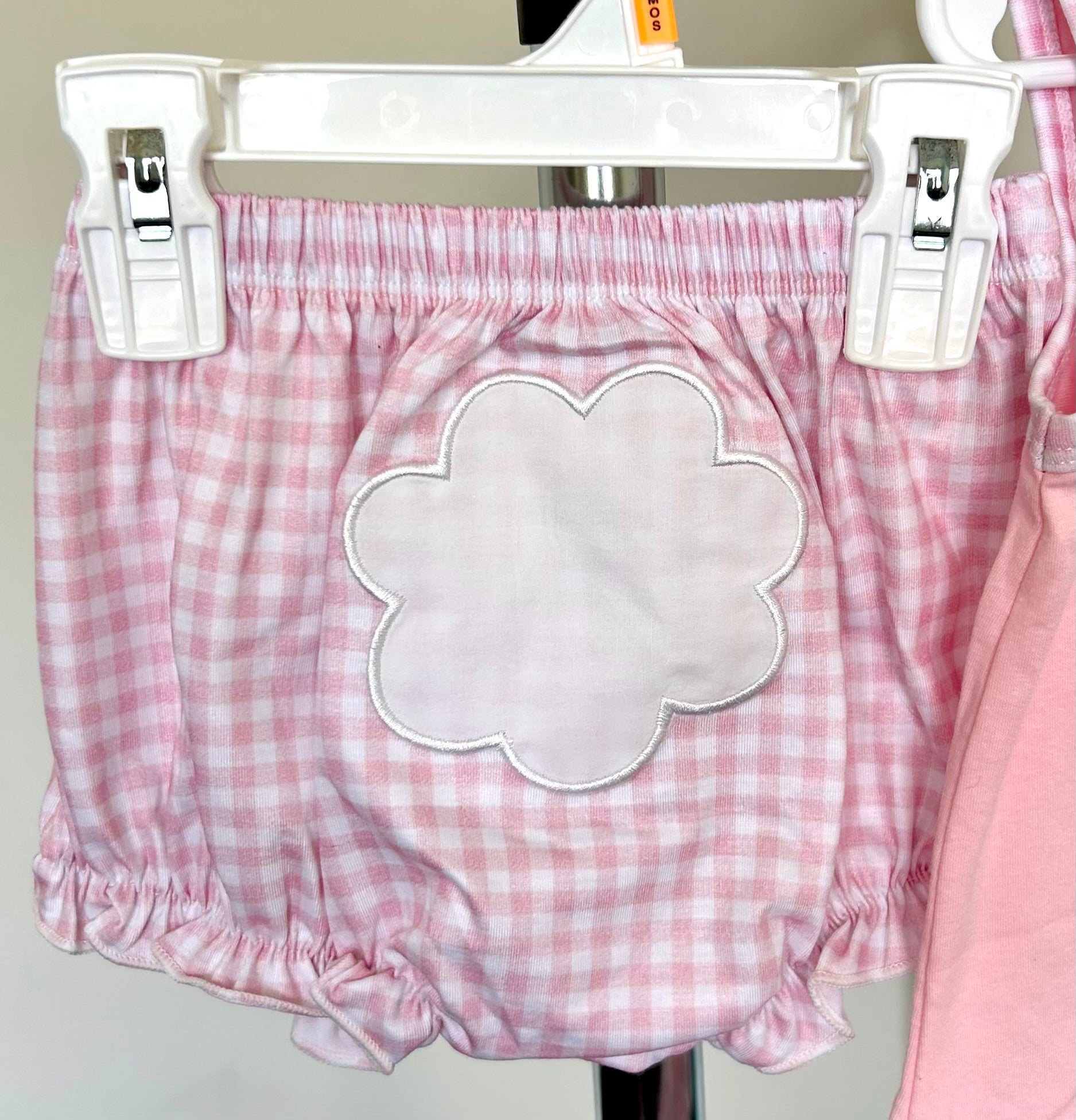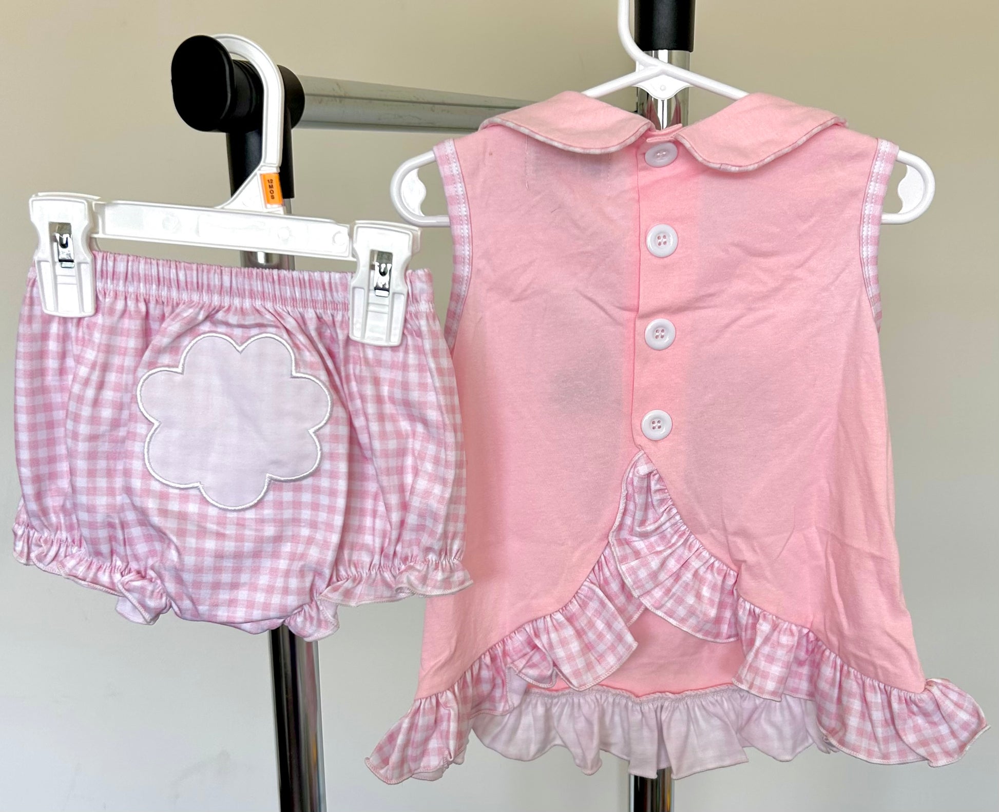 Pink and Gingham White Bunny with Floral Headband and Back Cottontail