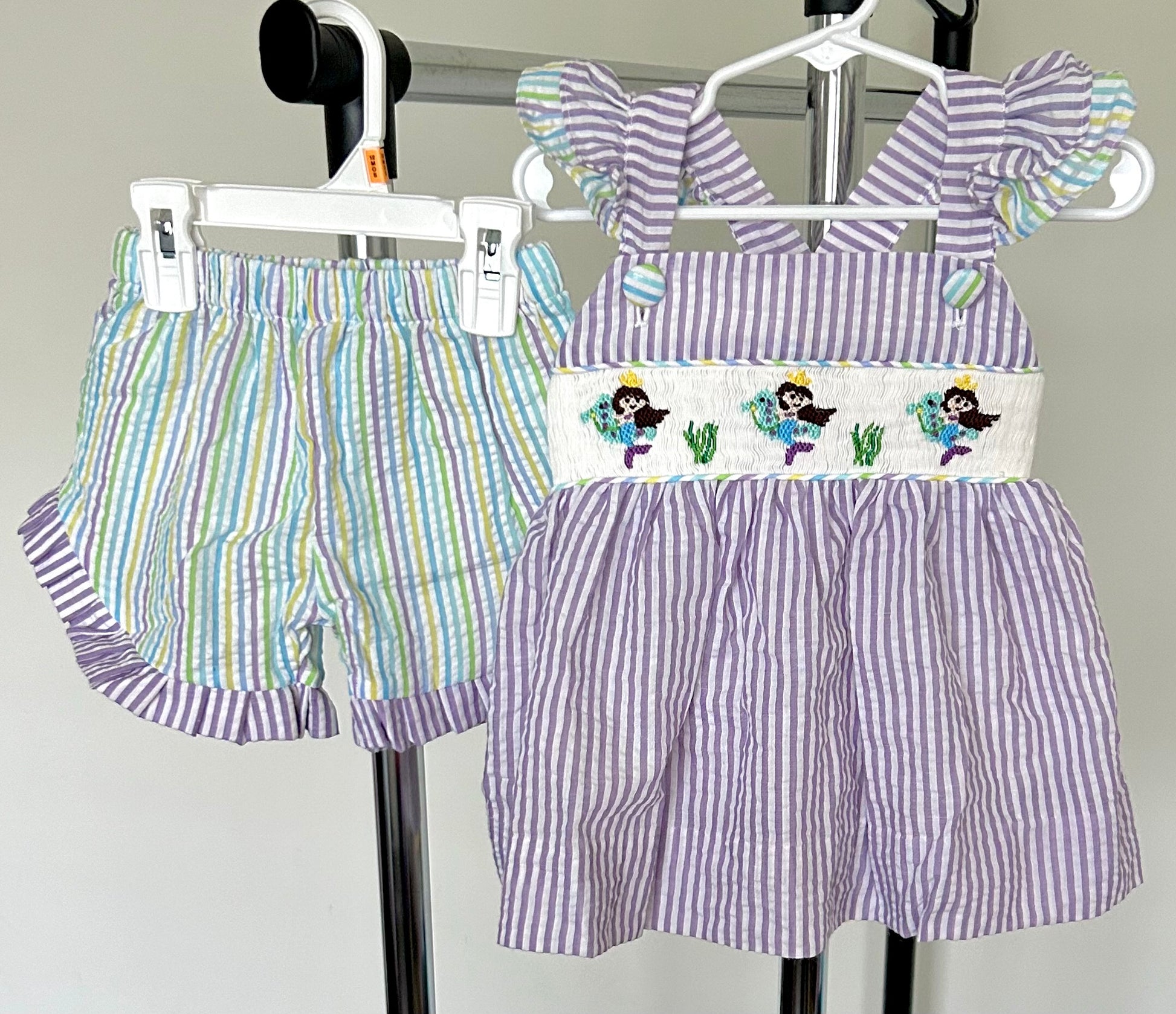 Purple and Pastel Striped Smocked Mermaid Trio