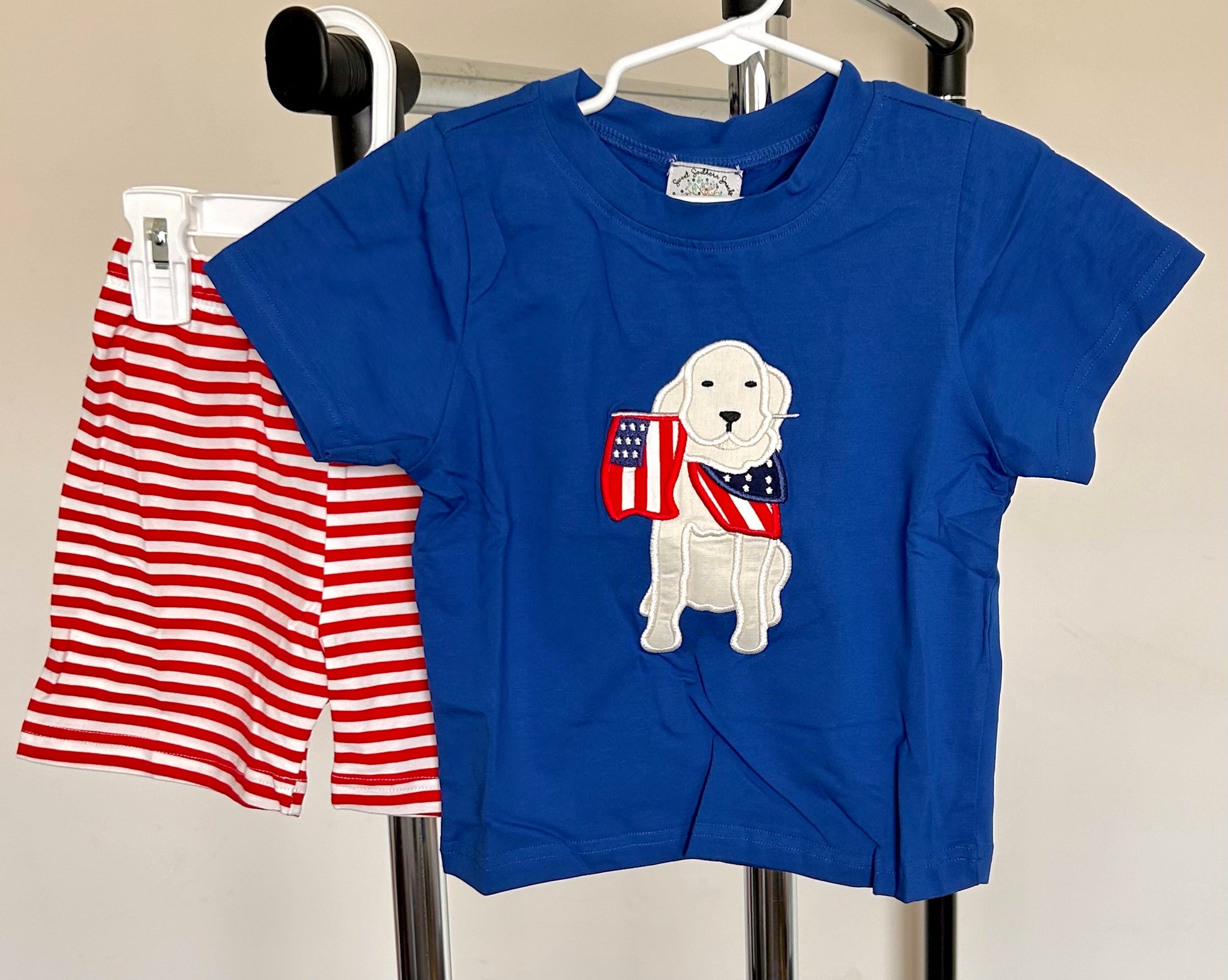 Royal and Red Stripes Patriotic Pup with Freedom Flag
